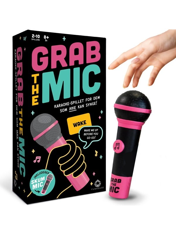 Vi har fundet Funhouse Games Grab The Mic En Dk fra Funhouse Games hos Proshop.dk i kategorien Braetspil. Karaokespillet for dem, der IKKE kan synge!Varm stemmebåndene op, syng af hjertens lyst, og slip din indre superstjerne løs med Grab The Mic!Vend et ordkort, tænk på en sang, der indeholder det ord, og skynd dig at gribe mikrofonen og begynd at synge! Hva