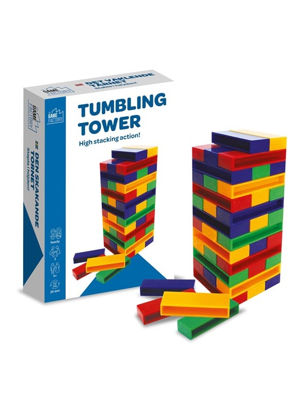 Vi har fundet The Game Factory Det Vaklende Tårn Rejsespil fra The Game Factory hos Proshop.dk i kategorien Braetspil. Tag dine yndlingsspil med på farten! Det Vaklende Tårn går ud på at fjerne en klods ad gangen og placere den på toppen af tårnet, uden at tårnet vælter. Spillet kræver en rolig hånd og også lidt held. Den sidste spiller, som har held til at stable en klod